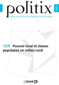 Local power and the working classes in rural settings No 137, 2022/1 - pagesPages 3 to 5EditorialPages 9 to 25Thinking about the production of distance from politics, approached through analysis of relations between local power and the working classes in rural settingsBy Ivan Bruneau, Maeva Durand, Julian MischiPages 27 to 54“The bosses think for us”: Rural notability and the political exclusion of laborersBy Julian MischiPages 55 to 78A festival of one’s own: Residential migration, power struggles and the transformation of political sociability in a periurban villageBy Sally SchnapperPages 79 to 95“Everyone talked about ‘the families who run things’. Local political power and systems of domination in rural regions of the United States”By conducted by Ivan Bruneau, with Juliette RogersPages 97 to 124Town Meeting and the double absence of the working classes: Investment in municipal government and the hierarchization of engagements in a Vermont townBy Ivan BruneauPages 125 to 155The space of political distance: The territorial construction of the relationship to the state in rural areasBy Clara DevillePages 157 to 182Secondary intermediaries of “diversity”: Aspirations and attributions of an elected official of Portuguese descentBy Alexandre BarbetPages 183 to 207“Appeal to everyone of goodwill to organize settlement”: Relocalizing the migration issue and new mobilizations in rural settingsBy Morane ChavanonPages 211 to 233Confronted with the withdrawal of the State. The territorial value of political resources in mobilizations for public servicesBy Joseph Hivert, Alexis SpirePages 235 to 239Raphaël Challier, Simples militants. Comment les partis démobilisent les classes populaires (Paris: Presses universitaires de France, 2021). 367 pages.By Jonathan Michel