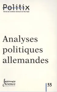 Analyses politiques allemandes n° 55, 2001/3 - pagesPages 7 à 9Liste des auteursPages 11 à 12EditorialPages 15 à 24Niklas Luhmann et la gouvernancePar Dietmar Braun, Yannis PapadopoulosPages 25 à 59L'opinion publiquePar Niklas LuhmannPages 61 à 84Démocratie et secret du vote. La controverse entre scrutin public et vote secret dans les luttes électorales en PrussePar Hubertus Buchstein, Pierre-Antoine SchorderetPages 85 à 93La Steuerungstheorie. Une approche synthétique de l'action publique contemporainePar Olivier GiraudPages 95 à 123L'institutionnalisme centré sur les acteursPar Renate Mayntz, Fritz W. ScharpfPages 125 à 147La régulation comme « patchwork ». La coordination de la multiplicité des intérêts dans le processus décisionnel européenPar Adrienne HéritierPages 151 à 181Le procès fait au Procès de civilisation. A propos d'une récente controverse allemande autour de la théorie du processus de civilisation de Norbert EliasPar Dominique LinhardtPages 185 à 188Kott S., Le communisme au quotidien. Les entreprises d'Etat dans la société est-allemandePar Jay RowellPages 188 à 194Papadopoulos Y., Démocratie directePar Marion PaolettiPages 195 à 215Revue des revuesPar Dominique Cardon, Tangui Coulouarn, Corinne Delmas, Delphine Dulong, François Foret, Brigitte Gaïti, Laurent Godmer, Christine Guionnet, Nicolas Kaciaf, Jean-Baptiste Legavre, Anne-France Taiclet, Benoît VerrierPages 217 à 222Résumés/Abstracts