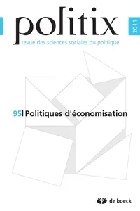 Politiques d'économisation n° 95, 2011/3 - pagesPages 3 à 5ÉditorialPages 7 à 21Tenir lieu de politiquePar Dominique Linhardt, Fabian MuniesaPages 23 à 46Une « Algérie californienne » ?Par Antoine Bernard de RaymondPages 47 à 72Faire la réalité ou s'y faire ?Par Thomas AngelettiPages 73 à 102Du ministère à l'agencePar Dominique Linhardt, Fabian MuniesaPages 103 à 127De la « solution » au « problème »Par Ariane DebourdeauPages 129 à 153La souveraineté est-elle privatisable ?Par Cyril Magnon-pujoPages 155 à 180Marchés efficients, investisseurs libres et États garants : trames du politique dans les pratiques financières professionnellesPar Horacio OrtizPages 181 à 206Organiser la résistance contre une restructuration lourdePar Rachel Beaujolin, François GrimaPages 207 à 231Une xénophobie d'État ?Par Marc-Olivier DéplaudePages 233 à 238Dubois (Vincent), Meon (Jean-Matthieu), Pierru (Emmanuel), Les Mondes de l’harmonie. Enquête sur une pratique musicale amateur, Paris, La Dispute, 2009, 305 p., indexPar Bernard LehmaninPages 238 à 242Buton (François) et Mariot (Nicolas), dir., Pratiques et méthodes de la socio-histoire, Paris, Presses universitaires de France, coll. « CURAPP », 2009, 206 p.Par Sylvain Antichan, Nagisa MitsushimaPages 242 à 246Beauthier (Régine), Méon (Jean-Matthieu), Truffin (Barbara), dir., Obscénité, pornographie et censure. Les mises en scène de la sexualité et leur (dis)qualification (XIX e -XX e siècles), Bruxelles, Éditions de l’Université de Bruxelles, coll. « Digithèque », 2010, 241 pagesPar Isabelle CharpentierPages 247 à 249Ragaru (Nadège), Capelle-Pogacean (Antonela), dir., Vie quotidienne et pouvoir sous le communisme. Consommer à l’Est, Paris, Karthala, 2010, 464 p.Par Anenoma Constantin