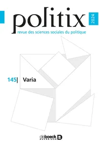 Varia n° 145, 2024/1 - pagesPages 3 à 27La politique au parvisPar Pauline BrückerPages 29 à 59Les violences « anti-flics » : gestion étatique et (dé)légitimationPar Vanessa CodaccioniPages 61 à 87S’ancrer dans les territoires ? Stratégie de responsabilisation et réforme policière dans les groupes de partenariat opérationnelPar Valérie Icard, Jacques de MaillardPages 89 à 112Les échelles du « commun »Par Arnaud SébileauPages 113 à 133Les Romains votaient-ils ?Par Romain MeltzPages 135 à 162Marcher contre l’inaction climatiquePar Maxime Gaborit, Yann Le Lann, Anaëlle Solnon, Hugo TouzetPages 165 à 168Vandebroek (Dieter), Distinctions in the Flesh: Social Class and the Embodiment of Inequality, Londres, New York, Routledge, 2017, 294 p.Par Théo RougnantPages 169 à 174Fretel (Julien), Offerlé (Michel), Écrire au président. Enquête sur le guichet de l’Élysée, Paris, La Découverte, 2021, 298 p.Par Erwan SeysPages 175 à 180Denis (Jérôme), Pontille (David), Le soin des choses. Politiques de la maintenance , Paris, La Découverte, 2022, 368 p.Par Kevin CaillaudPages 181 à 186Bayart (Jean-François), L’énergie de l’État. Pour une sociologie historique et comparée du politique, Paris, La Découverte, 2022, 782 p.Par Stéphanie PerazzonePages 187 à 194Avanza (Martina), Miaz (Jonathan), Péchu (Cécile), Voutat (Bernard), Militantismes de guichet : perspectives ethnographiques, Lausanne, Antipodes, 2022, 408 p.Par Jean BuyssensPages 195 à 198Martin (Benoît), Chiffrer le crime. Enquête sur la production de statistiques internationales, Paris, Presses de Sciences Po, 2023, 336 p.Par Antoine HardyPages 199 à 205Boulakia (Théo), Mariot (Nicolas), L’attestation. Une expérience d’obéissance de masse, printemps 2020, Paris, Anamosa, 2023, 400 p.Par Pierre-Yves Baudot, Amélie Carrier, Marion ClercPages 207 à 212François (Camille), De gré et de force. Comment l’État expulse les pauvres, Paris, La Découverte, coll. « L’envers des faits », 2023, 240 p.Par Pierre JoffrePages 213 à 215Ménoret (Marie), Sociologie et cancérologie : un regard de biais , Saint-Denis, Presses universitaires de Vincennes, 2023, 212 p.Par Maud Gelly